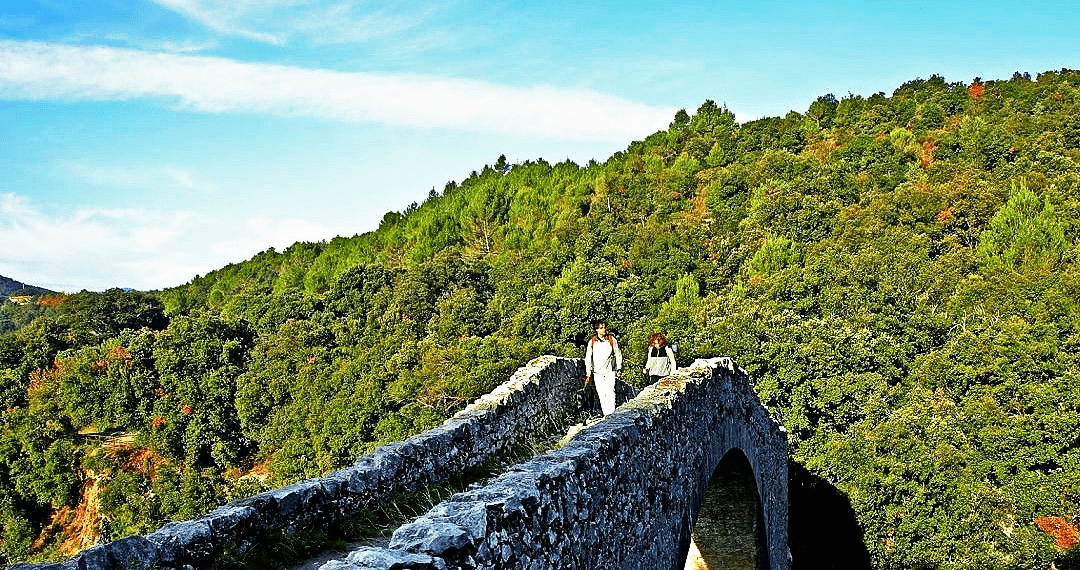 La Garrotxa suma más de 2.500 km de senderos. Una de las rutas ciclistas más recomendables, apta para todas las edades, es la vía verde de La Fageda d’en Jordà. Este itinerario circular de 20 km recorre el valle del Corb entre vistas espectaculares, iglesias escondidas y vegetación exuberante. Arranca en la antigua estación de tren de Les Preses.