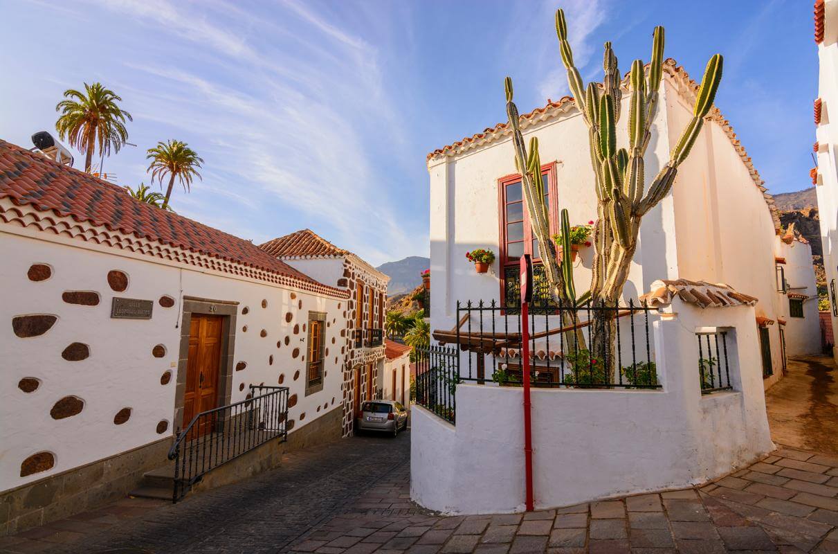 El recorrido arranca en el casco histórico: calles empedradas y casas blancas con detalles de piedra dibujan una estampa de postal. El núcleo lo ocupa la iglesia de Santa Lucía, del siglo XVIII, ejemplo sobresaliente de arquitectura canaria con su fachada de sillería labrada.